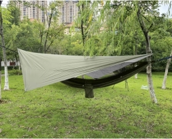 Viseća mreža je opremljena ceradom koja pruža zaštitu od UV zračenja, kiše i rose. Mreža protiv komaraca služi kao učinkovita zaštita protiv komaraca i drugih insekata, pritom omogućavajući dobro strujanje zraka. Praktični džep omogućuje pohranu sitnica kao što su telefon ili knjige nadohvat ruke.