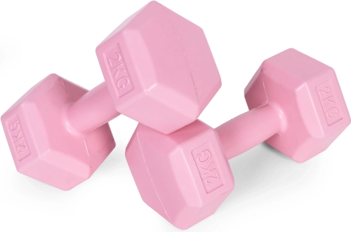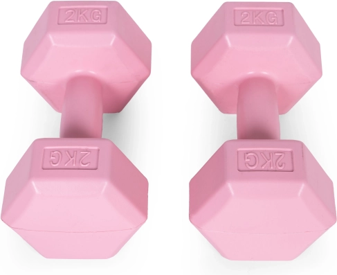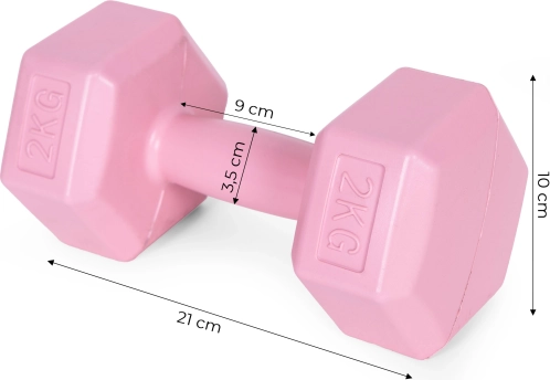 Vježbajte učinkovito kod kuće s ružičastim utezima ModernHome. Set sadrži 2 komada po 2 kg, koji podržavaju cjelovito jačanje cijelog tijela – ruku, leđa, trbuha, nogu i stražnjice. Zahvaljujući šesterokutnom obliku utezi su stabilni i sigurni, pa ih možete mirno odložiti tijekom kružnog treninga i za vrijeme pauza.