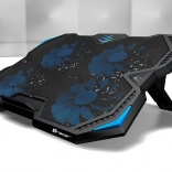 Snažni i tihi ventilatori: Podloga je opremljena s četiri tiha ventilatora od 140 mm, koji mogu postići brzinu do 1000 okretaja u minuti, čime osiguravaju učinkovito hlađenje vašeg uređaja. Plavo LED pozadinsko osvjetljenje daje podlozi futuristički izgled.