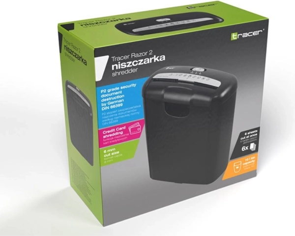 TRACER Razor 2 pruža pouzdano i sigurno uništavanje uobičajene uredske dokumentacije u udobnosti doma. Široki ulazni otvor i kapacitet do 6 listova značajno ubrzavaju rad, dok rez na trakice širine 6 mm osigurava zaštitu osjetljivih informacija na razini P2 (DIN 66399). Zahvaljujući mogućnosti uništavanja platnih kartica štitite i osobne podatke izvan papirnatih dokumenata.