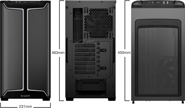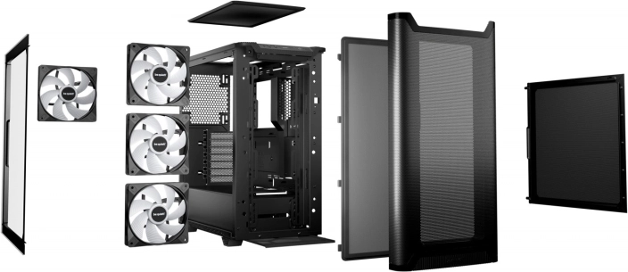 Mesh prednja strana i gornji poklopac podržavaju snažan protok zraka. Tri predinstalirana ventilatora Pure Wings 3 140 mm PWM osiguravaju visok tlak zraka uz nisku razinu buke.