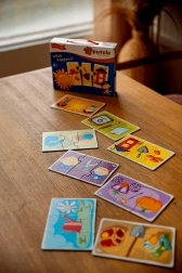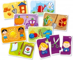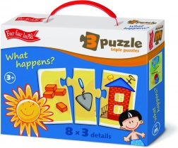 Otkrijte pametan set Far Far Land koji djecu na razigran način uči povezivanju i odnosima između predmeta. Svaka je slika podijeljena na tri dijela, a zadatak je pronaći ispravnu trojku koja pripada zajedno. Slaganje potiče koncentraciju, strpljenje i donosi radost svakog uspješno složenog motiva.