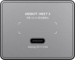 - OBSBOT Meet 2, USB‑C na USB‑A adapter, USB‑C kabel, zaštitni štit, magnetni držač, korisnički priručnik, jamstveni list