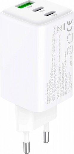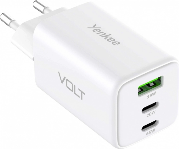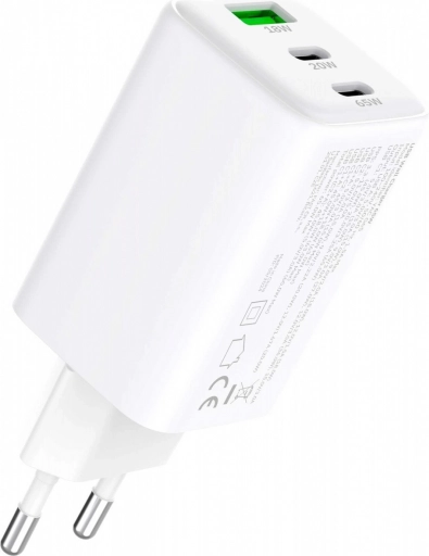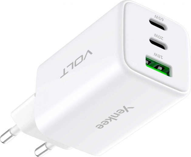 Kompaktan i snažan VOLT punjač s tehnologijom GaN nudi ukupnu snagu do 65 W i tri izlaza (2× USB‑C + 1× USB‑A) za istovremeno punjenje više uređaja. Podržava standarde Power Delivery 3.0 i Quick Charge 4.0, pa brzo i sigurno puni prijenosna računala, tablete i pametne telefone – jedan univerzalni punjač za sve vaše uređaje.