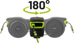 - Veća udobnost – crijevo duljine 25 m pruža puni doseg, a zakretni nosač s podesivim nastavkom omogućuje prilagodbu situaciji.