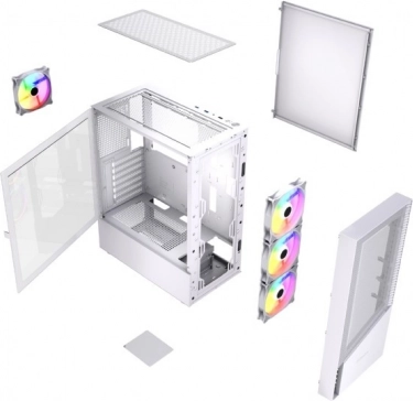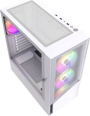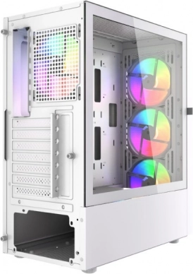 Stilsko gaming kućište Fornax 4300 u elegantnoj bijeloj boji nudi visok protok zraka, četiri ARGB ventilatora u osnovnoj opremi i bočnu stranicu od kaljenog stakla na šarki za lak pristup komponentama. Tu je i moderna povezivost 2× USB 3.1 + 1× USB 2.0 te promišljen unutarnji raspored za čist build. Napajanje nije uključeno u pakiranje.