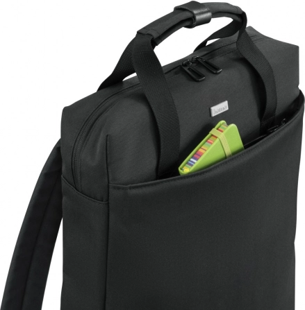 Prostrani prednji džep s preglednim organizatorom prima kabele, telefon i sitnice. Glavni pretinac sigurno učvršćuje prijenosno računalo pomoću elastičnog čička.