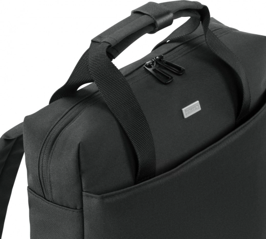 Praktični prednji džep s organizatorom pregledno drži kabele, telefon i sitnu opremu na svom mjestu. Vodootporan vanjski materijal štiti sadržaj od vlage, dok protuklizne nožice osiguravaju stabilnost, sprječavaju habanje i služe kao dodatna amortizacija. Zahvaljujući remenčiću za pričvršćivanje na putni kofer i udobnom podstavljanju naramenica, ruksak je odličan za poslovna putovanja i grad.