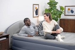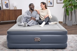 Zahvaljujući ugrađenoj električnoj pumpi madrac bez napora pripremite za nekoliko minuta. Integrirano uzglavlje LoungeLux povećava udobnost pri čitanju i gledanju televizije, a obodni okvir sigurno drži tijelo u sredini. Nakon ispuštanja madrac se kompaktno slaže u priloženu najlonsku torbu, pa je savršen za putovanja i štedljivu pohranu.