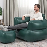 Uživajte u udobnosti gdje god poželite – nafukavajuća fotelja BESTWAY u tamnozelenoj boji spaja moderan dizajn, stabilnu potporu i mek baršunast (flokani) površinski sloj. Odličan izbor za čitanje, gledanje filmova ili opuštanje na balkonu ili uz bazen. Izdržljivi PVC materijali osiguravaju čvrstoću i dugotrajnost, dok jednostavno održavanje i brzo napuhavanje štede vrijeme.
