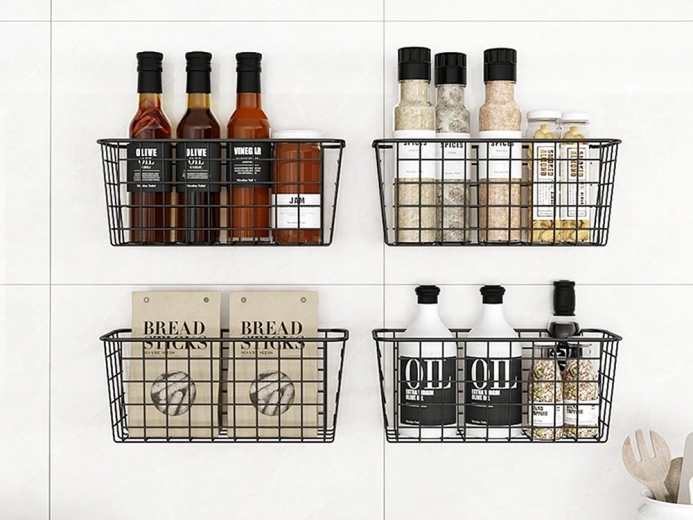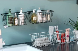 Ugradnju ćete svladati u trenu – dovoljno je upotrijebiti 2 samoljepljive zidne kuke, bez bušenja i alata. Košara se može koristiti i samostojeće kao policijski/shelf organizator. Minimalistički izgled lako se uklapa u moderne i klasične interijere.