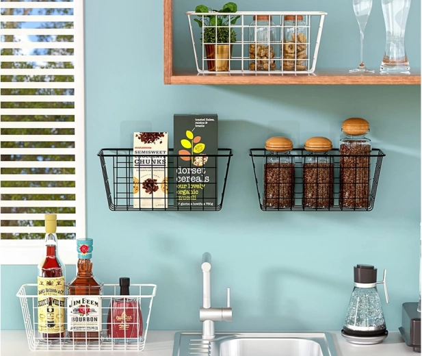 Održavajte red i uštedite prostor s ovom univerzalnom visećom košarom od metala. Nudi brzu ugradnju bez bušenja pomoću samoljepljivih kuka, čvrstu metalnu konstrukciju i prozračan žičani dizajn za bolju cirkulaciju zraka i pregled pohranjenih stvari. Idealna za kuhinju i kupaonicu za začine, voće, kozmetiku ili sredstva za čišćenje.
