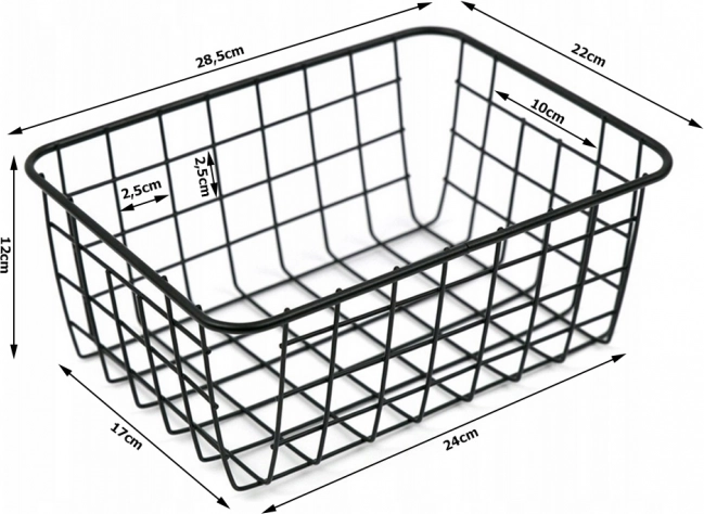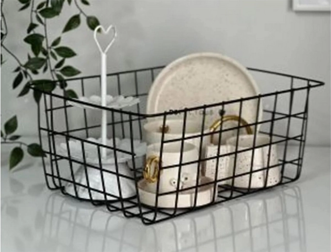 Ova prostrana žičana košara od lakiranog metala idealna je za svakodnevnu organizaciju – od namirnica i začina do toaletnih potrepština ili uredskog pribora. Minimalistički dizajn u crnoj boji pristaje modernim i industrijskim interijerima.