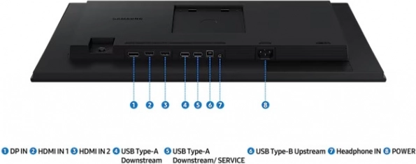 Povežite sve što trebate: 2× HDMI, 1× DisplayPort, USB-B upstream i 2× USB-A 2.0 za periferiju. Ugrađeni zvučnici štede prostor na stolu i dovoljni su za pozive i multimediju.