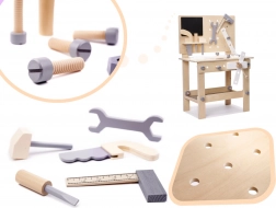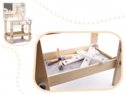 Odlična drvena igračka radionica set alata za malu djecu koja žele oponašati odrasle i otkrivati svijet oko sebe. Zahvaljujući bogatoj opremi, djeca se mogu osjećati kao pravi majstori u struci.