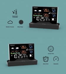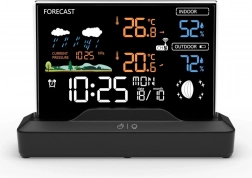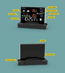 Zahvaljujući bežičnom senzoru s dometom do 30 m dobivate aktualnu temperaturu i vlažnost iz interijera i eksterijera. Barometar i ugrađena prognoza vremena za 12–24 sata olakšavaju planiranje dana. Tu su i alarm sa snooze funkcijom, kalendar te prikaz mjesčevih mijena.
