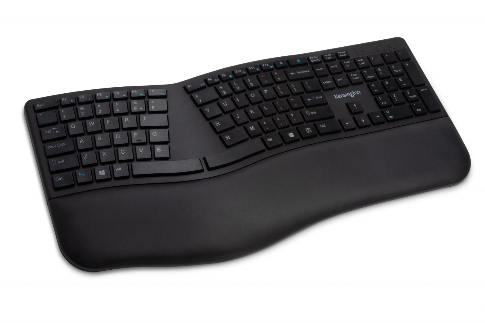 Ergonomska bežična tipkovnica dizajnirana je za udoban položaj ruku tijekom rada na računalu. Zahvaljujući podijeljenoj i pravilno nakošenoj površini s mogućnošću podešavanja nagiba te integriranim osloncem za zapešća, tipkovnica osigurava prirodan položaj ruku.