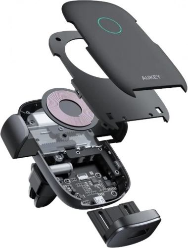 Elegantni AUKEY držač za pričvršćivanje na ventilacijsku rešetku, nagrađen iF DESIGN AWARD 2020, kombinira pouzdano držanje s brzim bežičnim Qi punjenjem. Automatski prilagođava snagu 5 W / 7,5 W / 10 W (za najbolji rezultat koristite automobiliski punjač s podrškom za Quick Charge). Elektromagnetski senzor prepoznaje umetanje telefona i krakovi se sami stegnu, dok dodirna tipka omogućuje brzo otpuštanje.