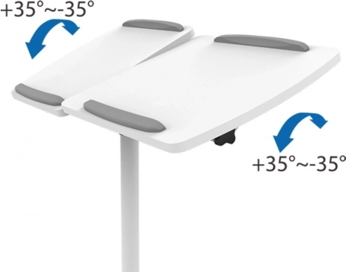 Nagibna radna ploča omogućuje ergonomsko podešavanje kuta do 35° prema gore i dolje. Sigurnosni graničnici i protuklizni elementi sprječavaju klizanje opreme, pa se možete usredotočiti na savršenu prezentaciju.