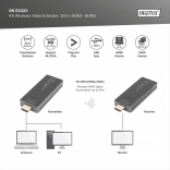 Uživajte u oštroj slici i čistom zvuku bez kabela. Ovaj set predajnika i prijamnika bežično prenosi HDMI signal u razlučivosti do 4K/30 Hz na udaljenost do 30 metara (u liniji vidljivosti). Idealan za povezivanje prijenosnog računala, set‑top boxa ili reproduktora s TV‑om, projektorom ili monitorom.