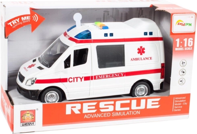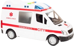 Realistično dječje sanitetsko vozilo u mjerilu 1:16 donosi djeci autentičan doživljaj spasilačke misije. Pritiskom tipki na krovu pale se rotacijska svjetla i čuju se zvukovi motora, sirene i trube, što igru čini još napetijom.