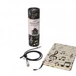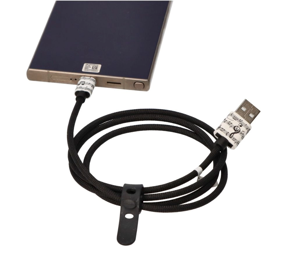 Stilski USB‑C kabel za punjenje s glazbenim motivom za svakodnevnu upotrebu. U paketu je i silikonska traka za praktično podešavanje duljine. Idealan za brzo punjenje i prijenos podataka s modernim uređajima. Praktičan dodatak za torbicu ili ruksak, izdržljivo izvedenje i laka organizacija kabela.