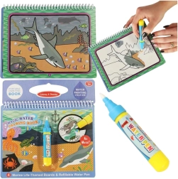 Ova višekratna vodena bojanka pruža djeci sate zabave. Zahvaljujući čarobnom vodenom peru, na stranicama se u dodiru s vodom pojavljuju jarke boje i skriveni detalji podmorskog svijeta. Nakon sušenja slika izblijedi i dijete može ponovno i ponovno bojati.