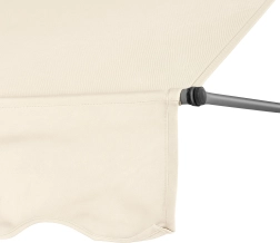 Čelični okvir s praškastim premazom osigurava otpornost na vremenske uvjete. Tkanina s hidrofobnim premazom štiti od sunca i vlage, osiguravajući dugi vijek trajanja i jednostavno održavanje.