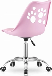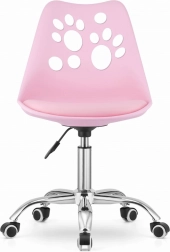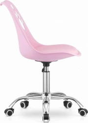 Otkrijte kombinaciju elegancije i funkcionalnosti s ovom ružičastom uredskom stolicom, idealna za ured, dnevni boravak ili blagovaonicu. Opremljena je podesivom visinom zahvaljujući pneumatskom dizalu i udobnim visokim naslonom, koji osigurava udobnost tijekom cijelog dana.