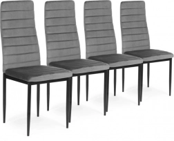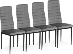 Set od četiri tapecirane stolice predstavlja elegantan i moderan element svakog interijera. Ove stolice nude izvrsnu udobnost zahvaljujući oblikovanom naslonu i visokokvalitetnoj pjenastoj ispuni. Opremljene su ravnim, crnim metalnim nogama za savršenu stabilnost i moderan dizajn.