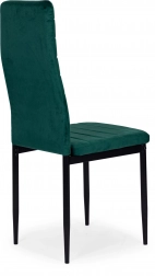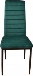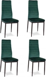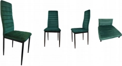 Ovaj set od četiri blagovaonske stolice idealan je izbor za vašu blagovaonicu ili dnevni boravak. Oduševit će vas svojim modernim dizajnom i na dodir ugodnim zelenim baršunastim presvlakama. Zahvaljujući visokom profiliranom naslonu i visokokvalitetnom pjenastom punjenju, stolice pružaju maksimalnu udobnost. Crne metalne noge daju stolicama elegantan izgled i istovremeno jamče stabilnost.