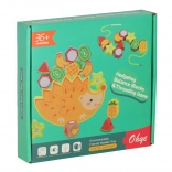 Slatki drveni jež s raznobojnim voćnim kockicama nudi dvije igre u jednoj: nizanje voća na vezicu i balansirajuće slaganje na leđa ježa. Poticanje fine motorike, logičkog razmišljanja i koordinacije oko–ruka. Kvalitetno glatko brušeno drvo i žive boje mame na dugu i smislenu igru.