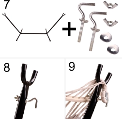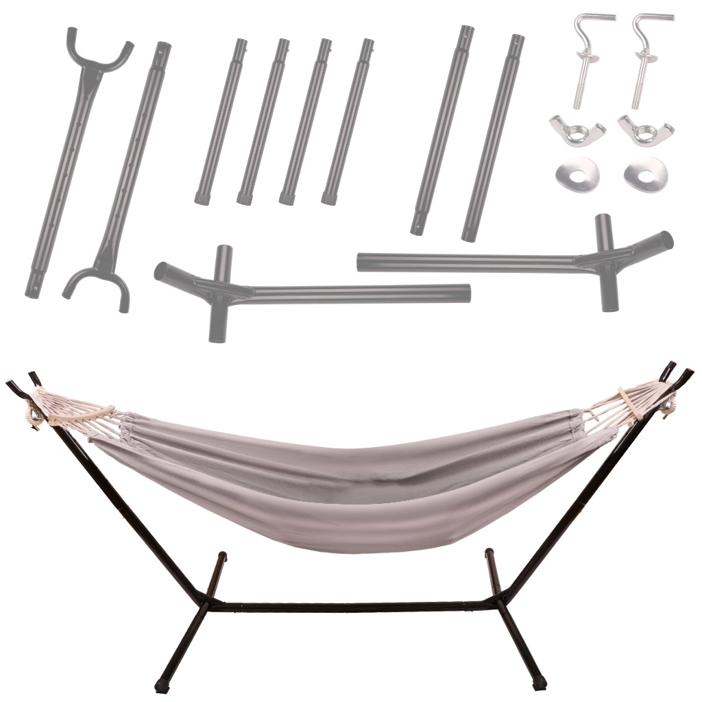 - viseća mreža, metalni stalak (10 dijelova), montažni alati, upute, transportna torba 72 × 18 × 23 cm