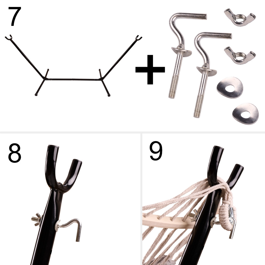 Uživajte u savršenom opuštanju u vrtu, na terasi ili balkonu s udobnom visećom mrežom na stabilnom metalnom stalku. Montaža bez bušenja, čvrsta konstrukcija, ugodno platno i lak ulazak zahvaljujući drvenoj prečki – idealno mjesto za odmor bilo kada tijekom dana.