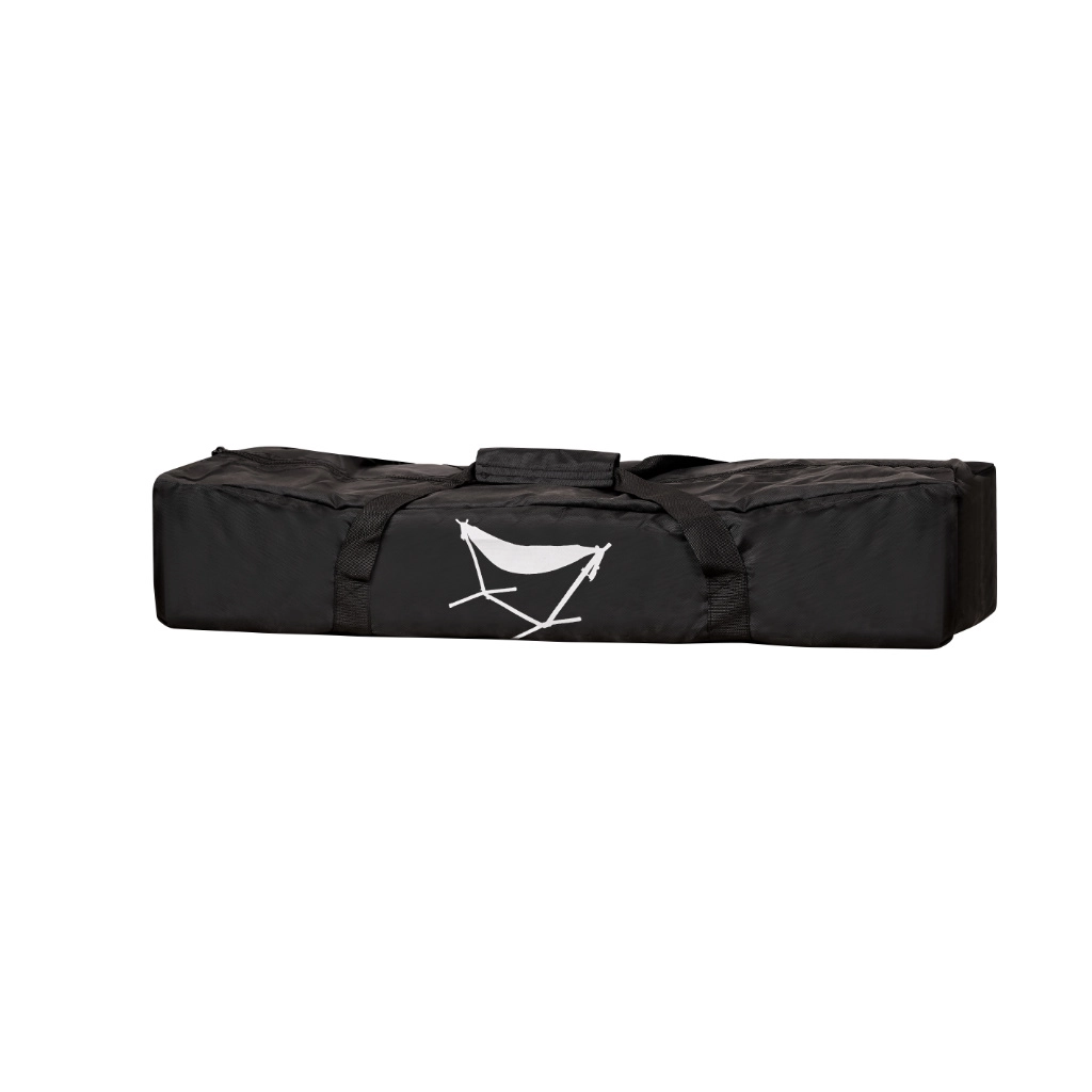Drvena prečka olakšava ulazak i izlazak te drži ležeću površinu raširenom. Set dodatno sadrži alat za montažu i praktičnu transportnu torbu s ručkama, pa mrežu lako možete prenijeti ili spremiti. Idealno za vrt, terasu i veći balkon – bez bušenja i bez kompromisa.