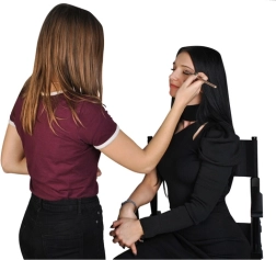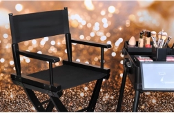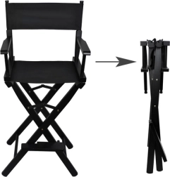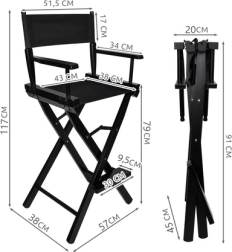 Sklopiva kozmetička stolica u crnoj izvedbi je profesionalna kozmetička stolica od drva, namijenjena za šminkanje, stiliziranje i make-up, idealna za salone i mobilne vizažiste.