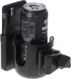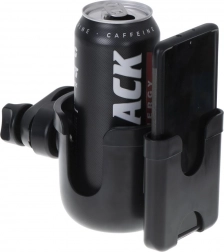 Ovaj držač je prikladan za različite vrste boca, bidona, termosica i telefona. Četiri fleksibilna 'uši' osiguravaju sigurno fiksiranje napitaka bez straha od izlijevanja. Otvorene strane omogućuju jednostavan pristup sadržaju. Pretinac za telefon omogućuje vam da vaš uređaj bude uvijek pred očima, tako da nećete propustiti nijednu važnu poruku.