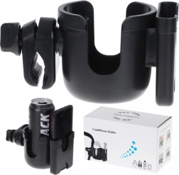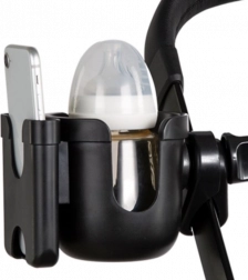 Držač za boce i telefon idealan je izbor ako želite imati napitak i telefon uvijek pri ruci. Univerzalnost i jednostavna montaža čine ga nezamjenjivim pomoćnikom za roditelje na putu. Dizajniran je da se uklopi kako na kolica, tako i na bicikl ili primjerice na hodalicu.