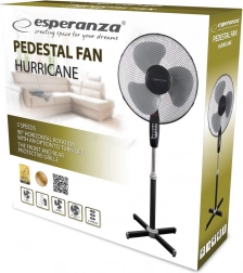 Uživajte u svježem povjetarcu s ventilatorom ESPERANZA HURRICANE, koji se zahvaljujući modernom izgledu lako uklapa u svaki interijer. Sigurnost osigurava gusta prednja i stražnja mrežica, koja je prošla “dječji test prsta”. Stabilno križno postolje s protukliznim završecima drži ventilator čvrsto na mjestu i pri duljem radu.