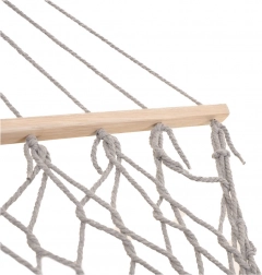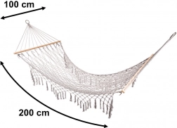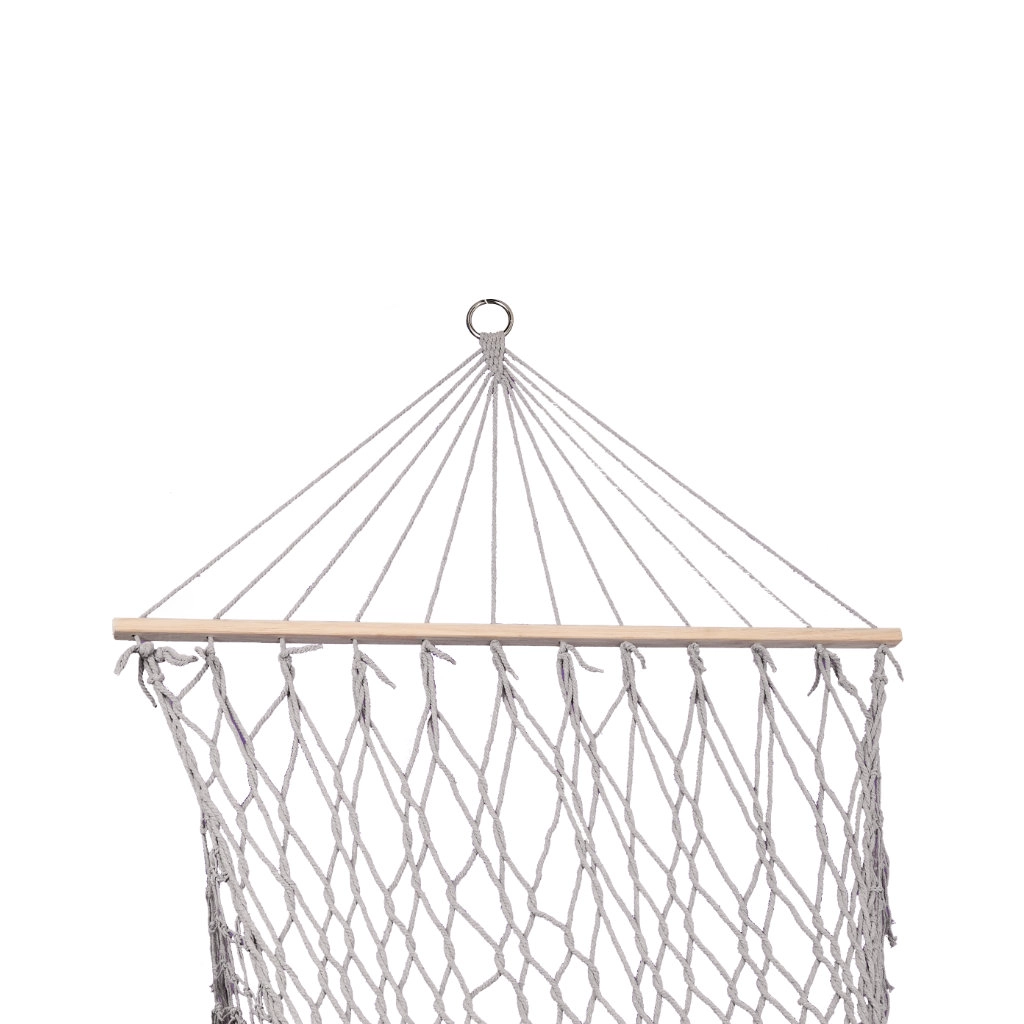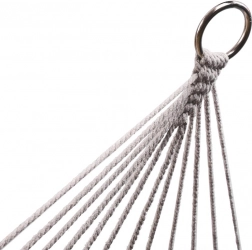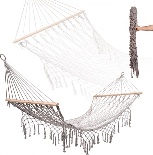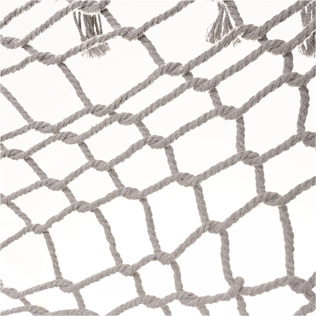 Izrađena od kvalitetnih pamučnih vlakana (65%), koja osiguravaju visoku čvrstoću i nosivost do 250 kg. Zahvaljujući elegantnim resicama i sivoj boji, savršeno se uklapa u bilo koje vrtno okruženje.