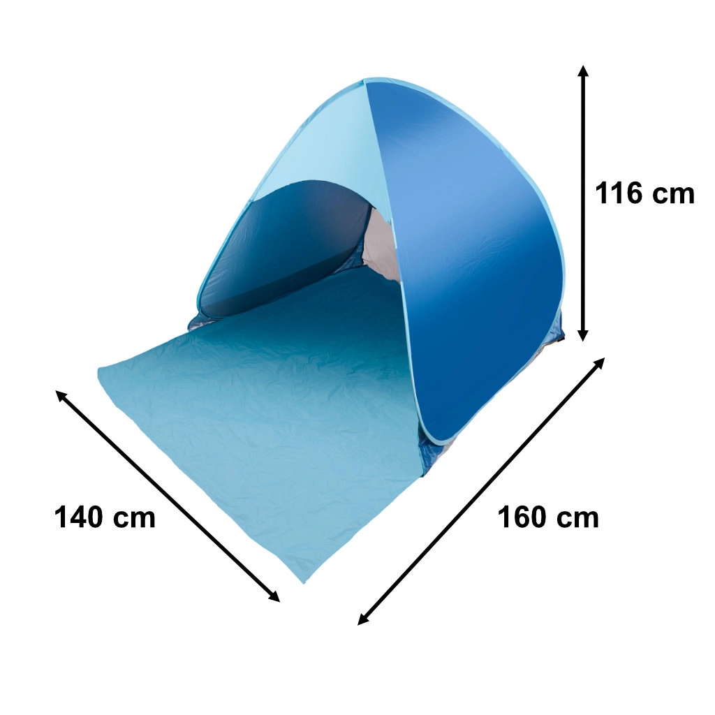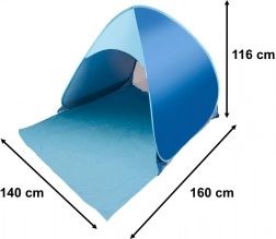 Plažni šator je idealno rješenje za ljetne avanture s obitelji ili prijateljima. Brzo i jednostavno postavljanje zahvaljujući sustavu automatskog rasklapanja, omogućuje šator lako prenositi u praktičnoj transportnoj torbi. Šator pruža zaštitu od sunca, vjetra i lagane kiše. Specijalna površina blokira štetno UV zračenje i održava ugodnu temperaturu unutra.