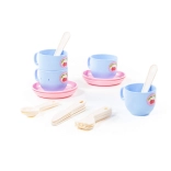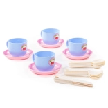 U setu se nalaze 4 šalice s tanjurićima i pribor za jelo. Sve se može prati i lako se čisti.