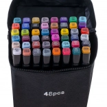 48× marker u različitim bojama, plastično postolje, tekstilni etui