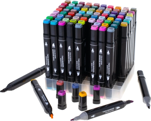 Široki zakošeni vrh prekriva velike površine, fini vrh crta precizne linije i detalje. Jedan marker pokriva obje vrste rada.