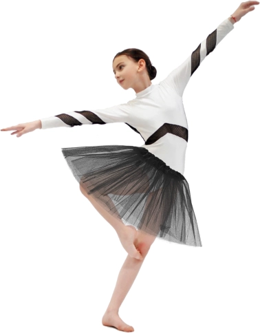 Čvrsto nabrani, nešto tvrđi slojevi stvaraju izraženi oblik tutu suknje koji drži formu i pri kretanju – idealno za balet, nastupe i fotografiranje.