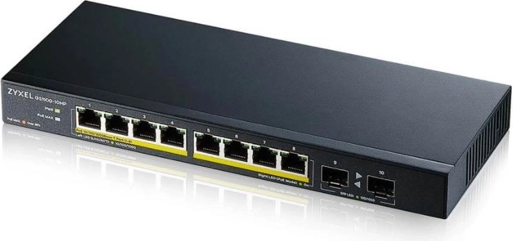 Gigabitni preklopnik Zyxel GS1100-10HP dizajniran je za tihi i štedljiv rad zahvaljujući ventilatorskoj konstrukciji i podršci za PoE+ tehnologiju. Pruža maksimalnu izvedbu za IP telefone, kamere ili bežične pristupne točke.