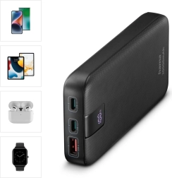 Iskusite prednosti naše prijenosne baterije s naprednom tehnologijom brzog punjenja Power Delivery i Qualcomm Quick Charge 3.0. Napunite do tri uređaja odjednom zahvaljujući dvama USB-C priključcima i jednom USB-A priključku.