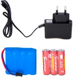 U kompletu su akumulator 4,8 V 700 mAh, mrežni punjač i baterije za daljinski (3× AA). Dovoljno je raspakirati i krenuti.