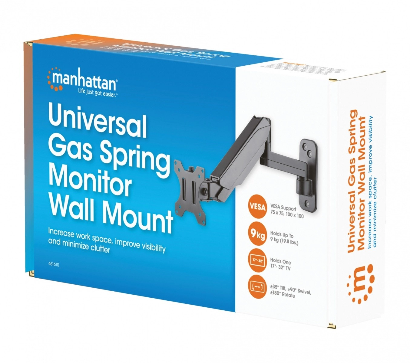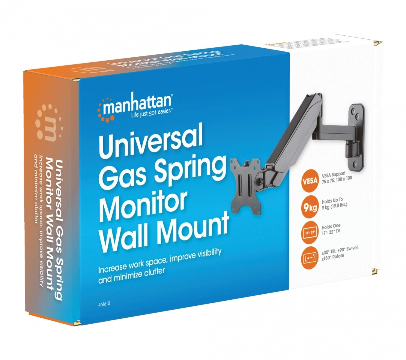 Univerzalni držač za monitor Manhattan s plinskom oprugom nudi jednoramenski zglob koji olakšava pomicanje zaslona u udobniji kut gledanja uz minimalan napor.