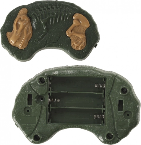 Upravljač u obliku fosila s dvjema tipkama: jedna za hodanje i pokret šapa, druga za svjetla, zvuk i pokrete glave.